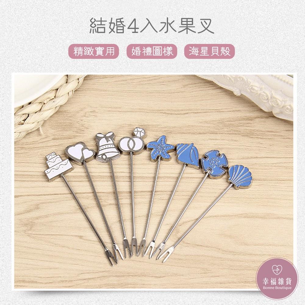 結婚4入水果叉/新婚 結婚 水果 水果叉【B&B 幸福雜貨】白-童話款,訂單總額(不含運費)未滿100恕無法出貨|藍-海洋款,訂單總額(不含運費)未滿100恕無法出貨Cutleriesbonneboutique1218
