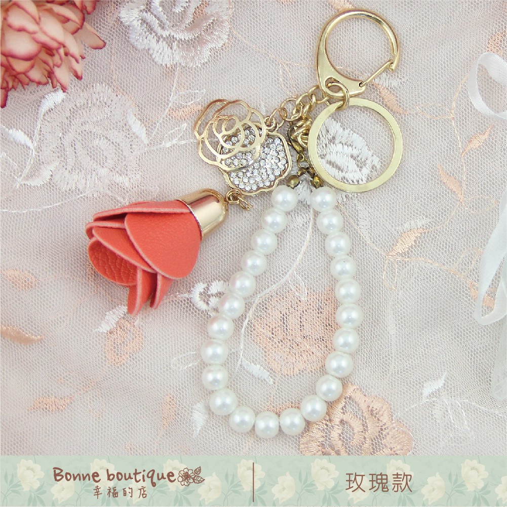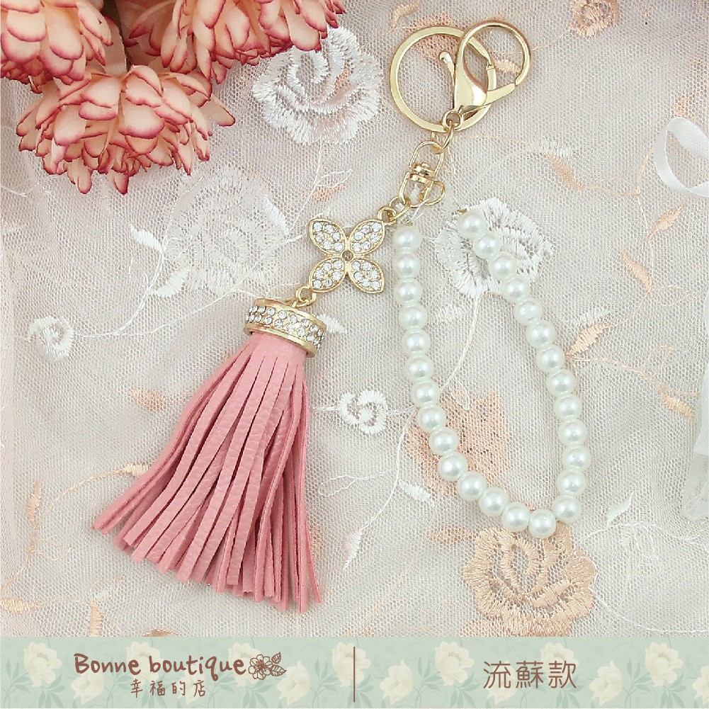 珍珠水鑽鑰匙圈/姊妹禮 生日禮物 婚禮小物 探房禮 伴娘禮【Bonne Boutique幸福雜貨】玫瑰|流蘇Keychainsbonneboutique1218