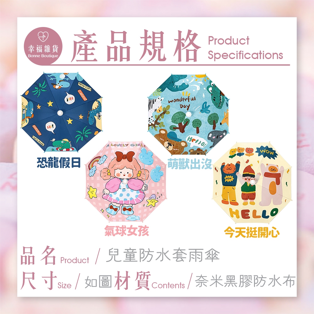 兒童防水套雨傘/晴雨兩用傘 圓珠設計 圓珠傘 卡通圖案 安全兒童雨傘 防戳雨傘 小孩 小朋友雨傘【B&B幸福雜貨】今天挺開心|恐龍假日|氣球女孩|萌獸出沒Rain Gearbonneboutique1218