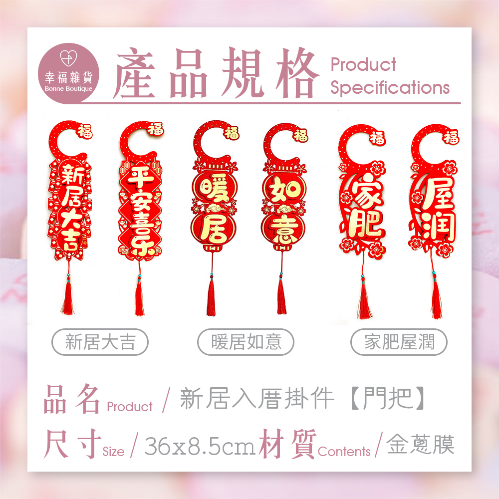 新居入厝門把掛件【多款】/進宅大吉 新居門貼 入厝用品 新居用品 新春春聯 進宅大吉 送禮 diy 【B&B幸福雜貨】新居大吉〚一對〛|暖居如意〚一對〛|家肥屋潤〚一對〛Photo Frames & Wall Decorationbonneboutique1218