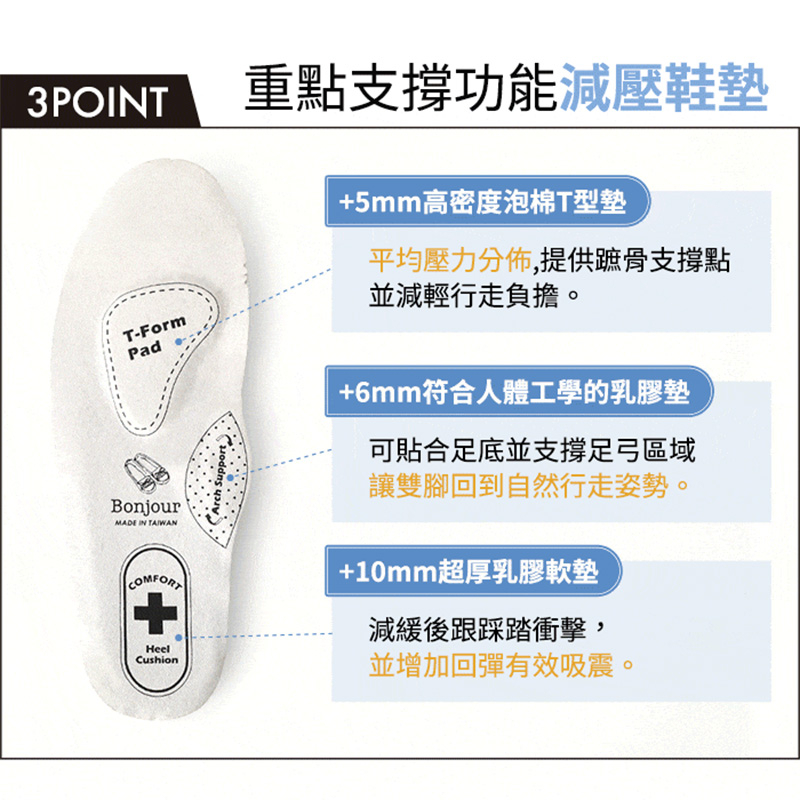BONJOUR 3POINT 護士鞋專用減壓乳膠鞋墊 ZBJ-18 護師鞋真皮舒適鞋墊38|39|40|41|42|35|36|37Insoles & Heel LinersBONJOUR女鞋官方直營店